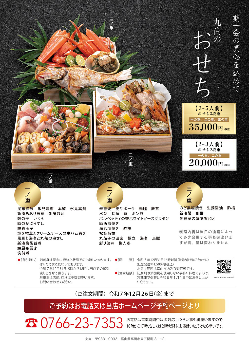 日本料理丸尚 2024年おせちご予約 高岡駅すぐそこ